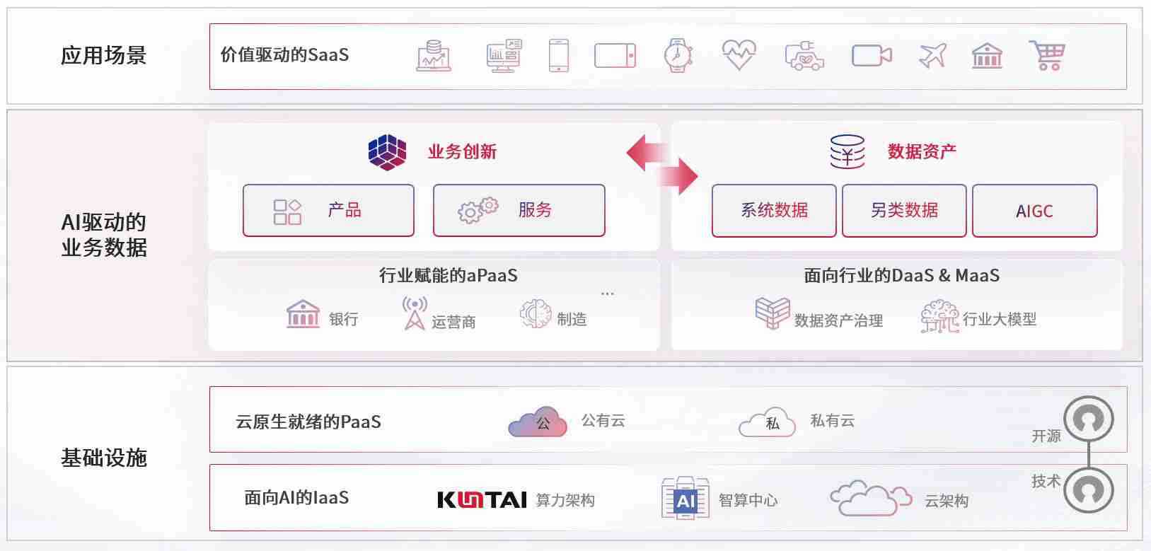 数字时代,,围绕企业数字化转型的关键要素,,,,J9.COM数码开创性的提出数云融合战略和技术体系框架,,着力在云原生、、数字原生、、、、AI原生和信创产业上架构产品和服务能力,,,,为处在不同数字化转型阶段的快消零售、、、、汽车、、、金融、、、、医疗、、政企、、、教育、、、运营商等行业客户提供泛在的敏捷IT能力和融合的数据驱动能力,,,,构建跨界融合创新的数字业务场景和新业务模式,,,助力企业级客户建立面向未来的核心能力和竞争优势,,,全面推动社会的数字化、、、智能化转型升级。。。。